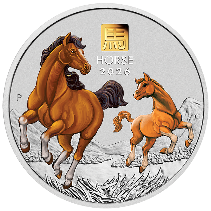 Also included in the design is a 1-gram pure gold privy insert portraying the Chinese character for ‘Horse’, the inscription ‘HORSE 2026’, and The Perth Mint’s ‘P’ mintmark.