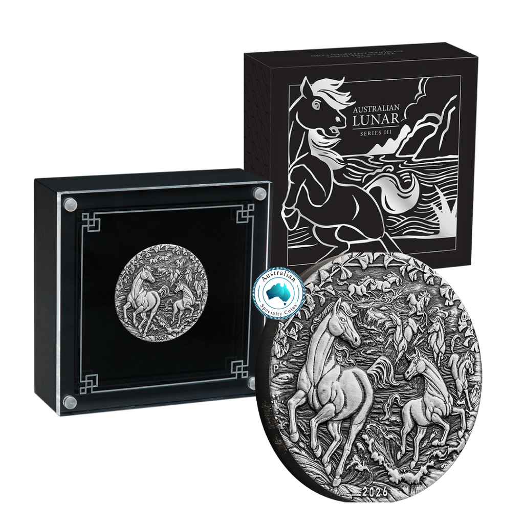 2026 Australian Lunar Series III Year of the Horse 2oz Silver Antiqued Coin