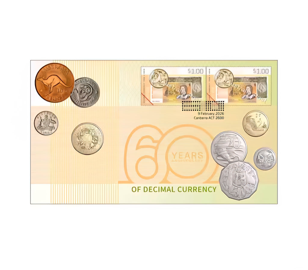 2026 Decimal Currency 60th Anniversary $1 Postal Numismatic Cover.