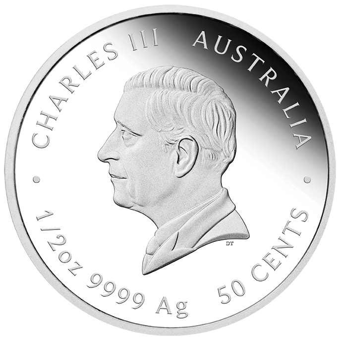 The obverse bears the Dan Thorne effigy of His Majesty King Charles III, and the coin’s weight, purity and monetary denomination.
