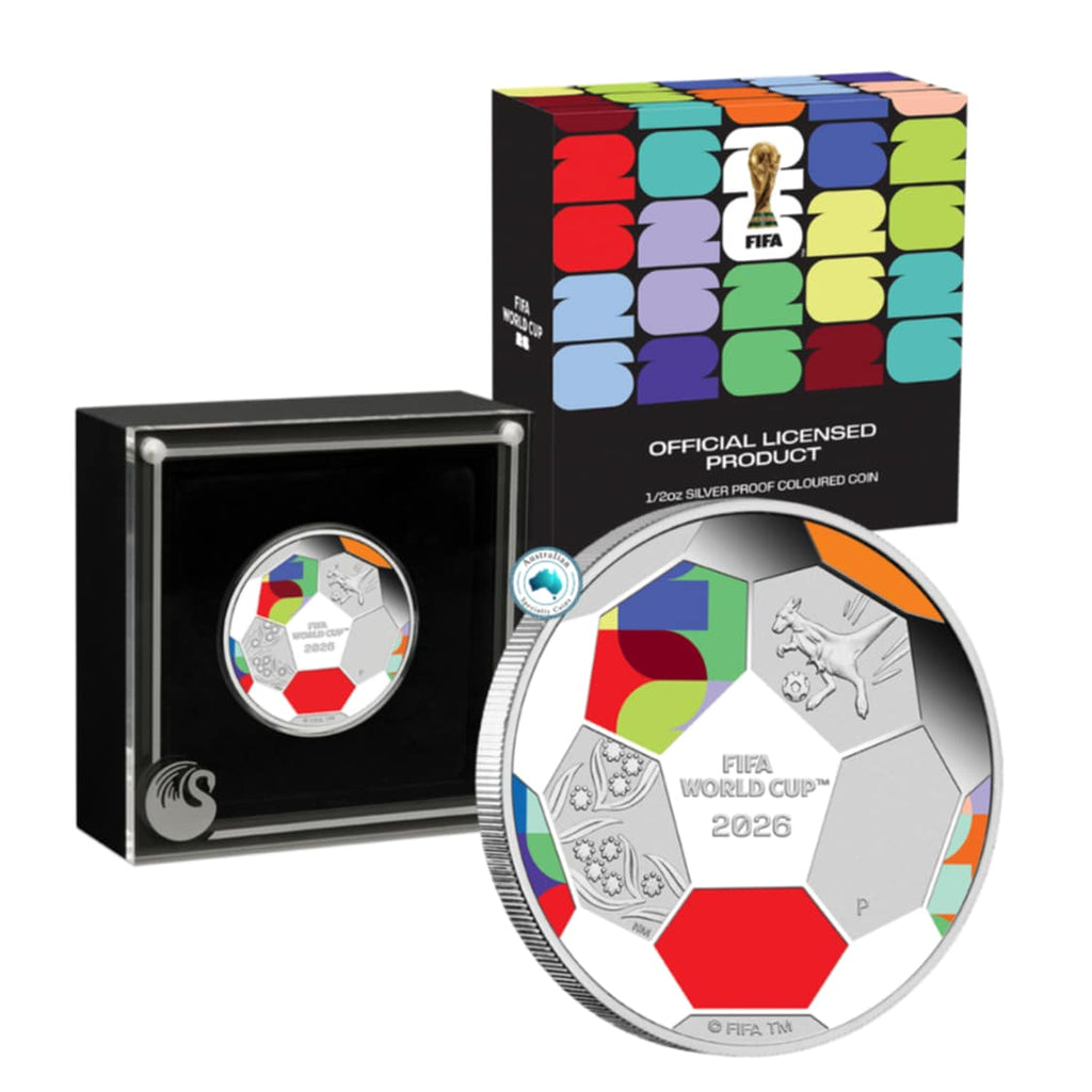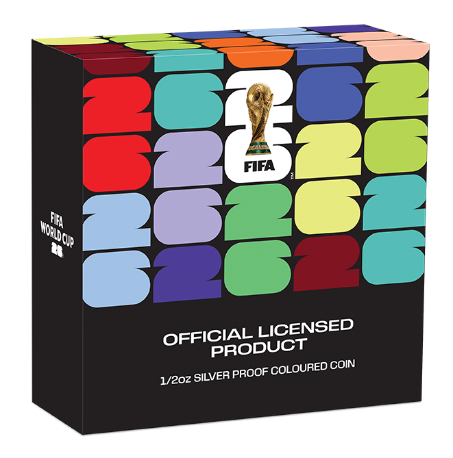 Celebrating the FIFA World Cup 2026™, The Perth Mint is pleased to present this beautifully designed silver proof coloured coin minted from 1/2oz of 99.99% pure silver.